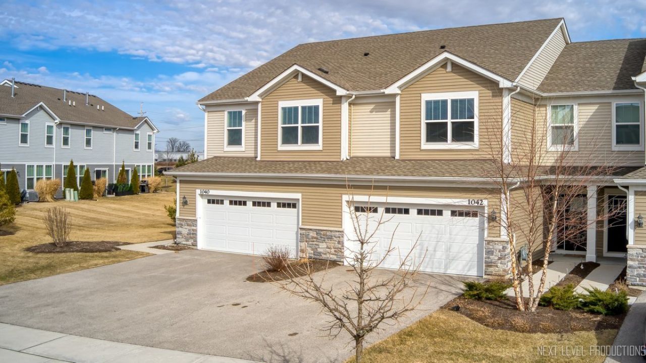 Tucked into the desirable Park Pointe neighborhood of South Elgin, this beautifully maintained end unit townhome offers the perfect blend of space, style and convenience. Just minutes from downtown South Elgin, the Fox River, Illinois Prairie Path, Koehler Fields and major routes including 25, 59, 20 and 31, the location puts parks, dining, shopping and entertainment right at your fingertips. A covered front porch welcomes you in, while the private backyard patio and rare 2.5 car attached garage add everyday functionality. Inside, the open concept floor plan showcases modern neutral decor, recessed lighting and luxury vinyl plank flooring throughout the main level. The inviting family room flows seamlessly into the dining area with a sliding door to the patio, and the eat in kitchen impresses with quartz countertops, stainless steel appliances, Aristokraft cabinetry, a breakfast bar and pantry. Upstairs, a versatile loft provides flexible living space, along with three spacious bedrooms, each featuring walk in closets. The primary suite includes a private bath with double bowl vanity, and the second floor laundry room adds everyday convenience. With 30 year architectural shingles and an HOA that covers exterior maintenance, snow removal and lawn care, this home delivers low maintenance living in an unbeatable South Elgin location.