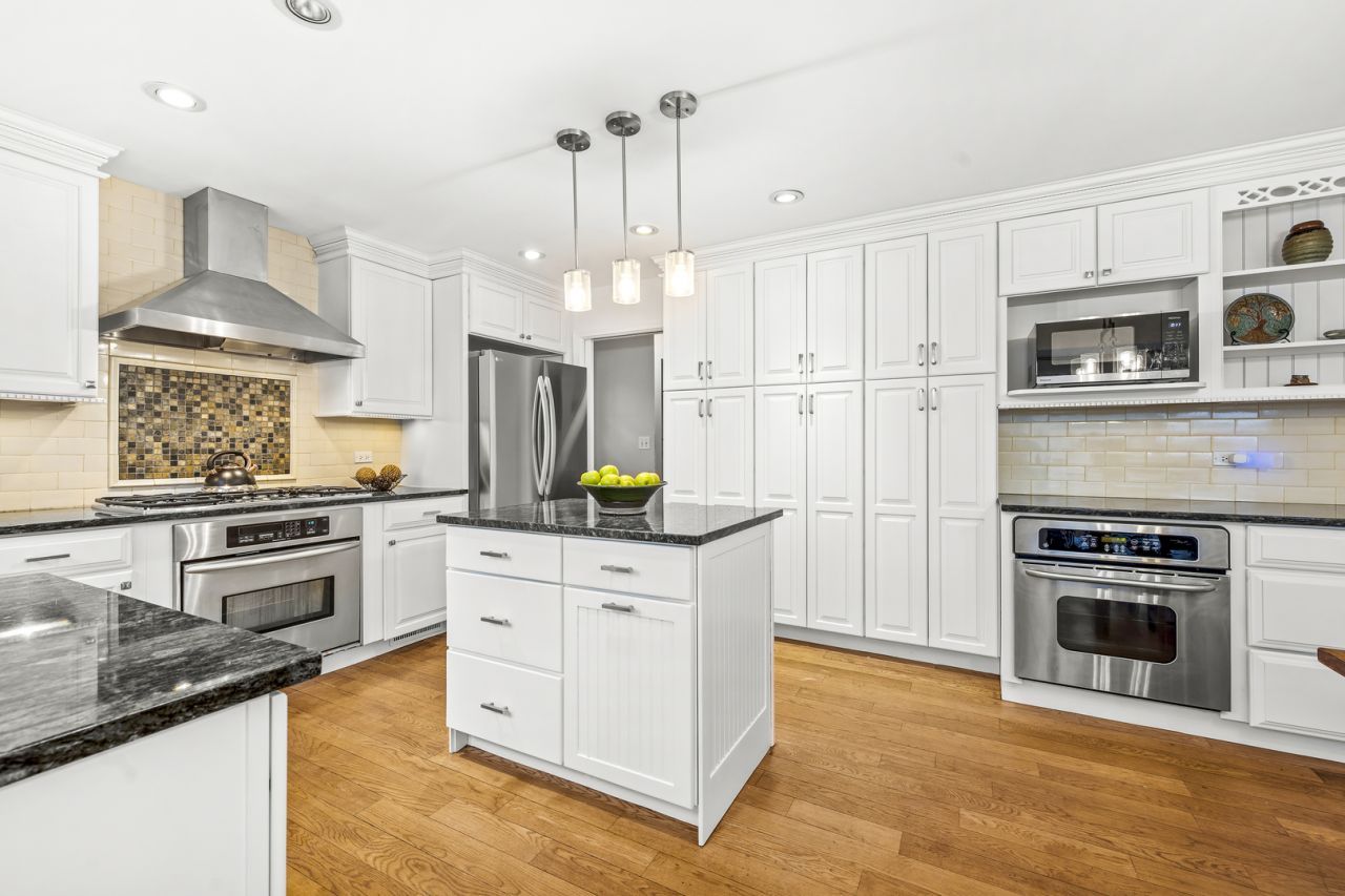 Sun-filled 5 bedroom, 2.5 bath North Trail home in an ideal Deerfield location. The welcoming foyer opens to an expansive wood-beamed living room, oversized dining room, and a private study that can easily serve as a fifth bedroom. The bright kitchen features 2 ovens, granite countertops and a charming bay window and is ideally positioned between the spacious family room with wet bar and sliding doors leading to the large backyard-perfect for entertaining and everyday living. A convenient main floor laundry/mudroom sits just off the kitchen and provides access to the attached two-car garage. The second floor offers a very large primary suite with bath featuring a double vanity and two generous walk-in closets. Three additional bedrooms, each with two large closets and hardwood floors, share a tastefully updated hall bath. The finished basement provides incredible flexibility with abundant space for a recreation room, exercise area, playroom, and more, along with extensive storage. Fantastic location less than one mile to Walden Elementary and just steps to the high school-without backing to Waukegan Road. Close to town, Metra, parks, and all the conveniences Deerfield has to offer.