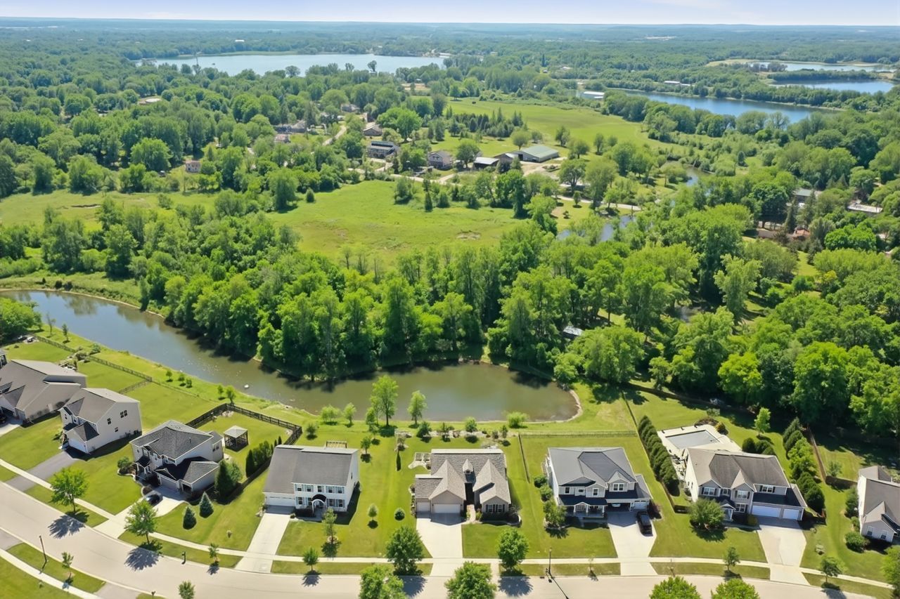 Looking for a beautifully updated ranch in immaculate condition with an in-law suite, entertainment space, and peaceful water views? This is the perfect opportunity! Enter through the front foyer as natural light fills the open floor plan on the main level with expansive 9 foot ceilings throughout. A gorgeous stone fireplace anchors the living space made for conversation and cozy evenings. The heart of the home is a fully updated kitchen- a striking center island invites gathering, while granite countertops flow into a hammered copper, oil-rubbed bronze extension counter that blends artisan detail with everyday function. A generous walk-in pantry, upgraded stainless steel appliances, and a double oven make meal prep effortless, while a reverse osmosis water system adds an extra layer of convenience. Off of the breakfast nook area, head out the sliding doors to the back deck overlooking the water. The kitchen and living space open up to an added dining area with a built-in wine fridge, dry bar, and an abundance of extra counter/cabinet space. The primary suite has it's own private and fully updated bathroom with stunning finishes attached to a spacious walk-in closet for plenty of storage. Beyond the main floor, the fully finished lower level expands the home's possibilities. A thoughtfully laid out kitchen and full bathroom connected to an oversized bedroom create an ideal in-law suite, multi-generational living space, guest quarters, or rental-ready space which offers privacy without sacrificing connection to the rest of the home. A beautiful slate accent wall with a built-in electric fireplace is another desirable highlight. This is the perfect entertainment area or second living space! The possibilities are endless, including an additional room (mostly finished) that could provide a workshop area or a 5th bedroom space once the rest of the drywall is complete. Plus, there's ample unfinished space behind the second kitchen, ideal for storage or future expansion. Step outside and the property's waterfront setting reveals itself - mornings with relaxing water views, afternoons in the hot tub, gardening in the raised beds, and evenings spent relaxing on the fenced-in patio. Practical updates give you confidence to move in and enjoy: a new roof, irrigation system, and hot water heater are in place, so you can focus on living rather than maintaining. Every detail here balances style and function, from the gourmet updated appliances to the warm finishes, creating a retreat that feels both polished and welcoming. Schedule a showing to experience the thoughtful updates, flexible living spaces, and serene waterfront setting in person.