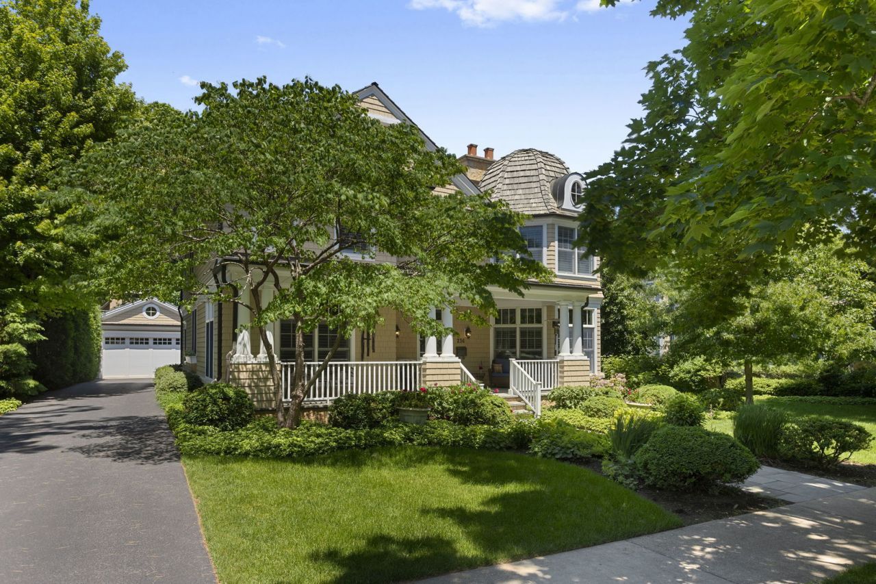 Crafted in 2006 by the Goebeler Company and designed by Lake Forest Landmark Development, this New England shingle-style home carries the character of a historic property with modern amenities. Inside, timeless architectural details anchor the interiors including 10-ft. ceilings, wainscoting, crown molding, tray ceilings, intricate woodwork, hardwood floors, and built-ins. A welcoming front porch introduces you to a spacious formal entry with European closets. To the right, an octagon-shaped living room features a gas fireplace and built in cabinet for games or a dry bar. To the left, a large dining room with Cole & Sons wallpaper and beaded chandelier set the scene. Pass through to the gourmet all white kitchen with Subzero and Thermador appliances, farmhouse sink, quartz countertops, a large kitchen island, and space for a breakfast table. The kitchen leads to a sunny family room, and both rooms feature French doors to the patio with gas Weber grill. A mudroom with beadboard, slate tile and floor to ceiling cabinetry includes convenient access to the driveway and side yard, a powder bath, and laundry room. The upstairs primary suite doubles as a sanctuary with a fireplace, large walk-in closet, and a spa-inspired bath with heated floors, walk-in shower, dual vanities, and soaking tub, all meant to evoke calm. Three additional bedrooms and two baths are upstairs. The finished basement adds 1,602 square feet and includes a large rec space, flexible office or den with a fireplace, exercise room, plus a private fifth bedroom with full bath and steam shower-perfect for guests, in-laws, or au pair. Modern systems include a standby generator, two-system HVAC, insulated 2-car detached garage. A picture-perfect setting in East Lake Bluff, only a few blocks from downtown, the Metra, and Lake Michigan. Move-in ready and enjoy it from day one.