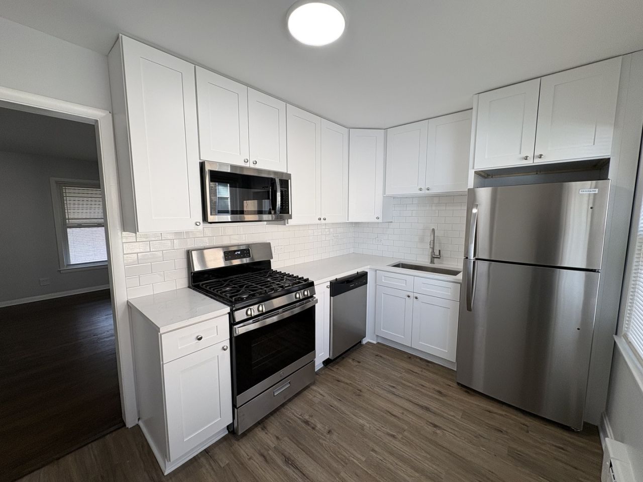 Freshly updated 2 bed / 2 bath rental in Highwood offering modern finishes, spacious living areas, and versatile lower-level space. Enjoy a bright, oversized living room with newly refinished dark hardwood floors and large windows that fill the home with natural light. The new kitchen features white shaker cabinetry, quartz countertops, subway tile backsplash, and stainless steel appliances including a gas range and built-in microwave. The main level includes two well-sized bedrooms with updated lighting and neutral finishes, plus an updated full bath with contemporary tile and modern vanity. The expansive lower level offers additional finished space ideal for a family room, home office, or gym, along with a second full bath and dedicated laundry area. Enjoy the huge backyard in the summer. 2 dedicated parking spaces assigned to unit. Located in desirable Highwood, close to restaurants, shopping, Metra, and lakefront amenities.