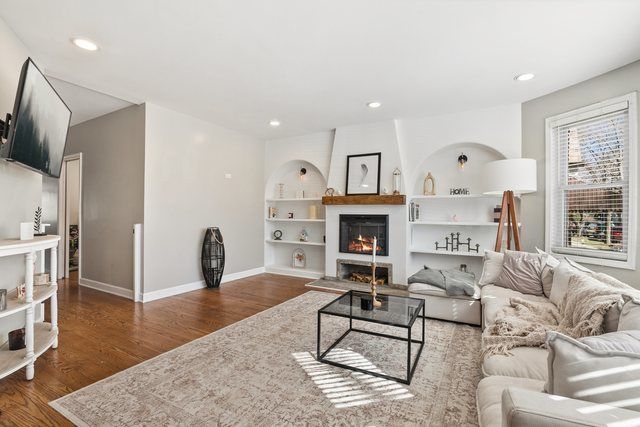 Beautifully maintained home on a quiet tree-lined street with 6 bedrooms and 3 bathrooms. The main level showcases hardwood floors, a remodeled kitchen with Quartz counters, high-end appliances, a wine fridge, and a coffee station. Newly added built-in shelves and a custom-built-in fireplace. The home provides warmth and character throughout. The moment you walk up to the arched doorway with a stained-glass feature, you will fall in love. Additional features: large walk-in closets, central air(space-pac system), a heated garage, LED lighting, high ceilings, and a private fenced-in yard. You can not miss out on the related living space. The basement is fully finished with a separate entry and can be used for family/friends or as an investment opportunity. The lower level has a full kitchen, living space, bathroom, and bedrooms, and a second washer & dryer providing everything that you will want. Recent updates include a new sump pump and a sewer clean-out has been added to the front yard for easy access. The two-car detached garage also provides additional exterior parking with a rolling driveway gate. The location is near the Six Corners, Brickyard shopping, Jewel, Target, your favorite parks, and also close to the CTA Blue line with easy access to I-90. This home has been well taken care of and is ready for its new homeowners to come in and love the home as much as they have.